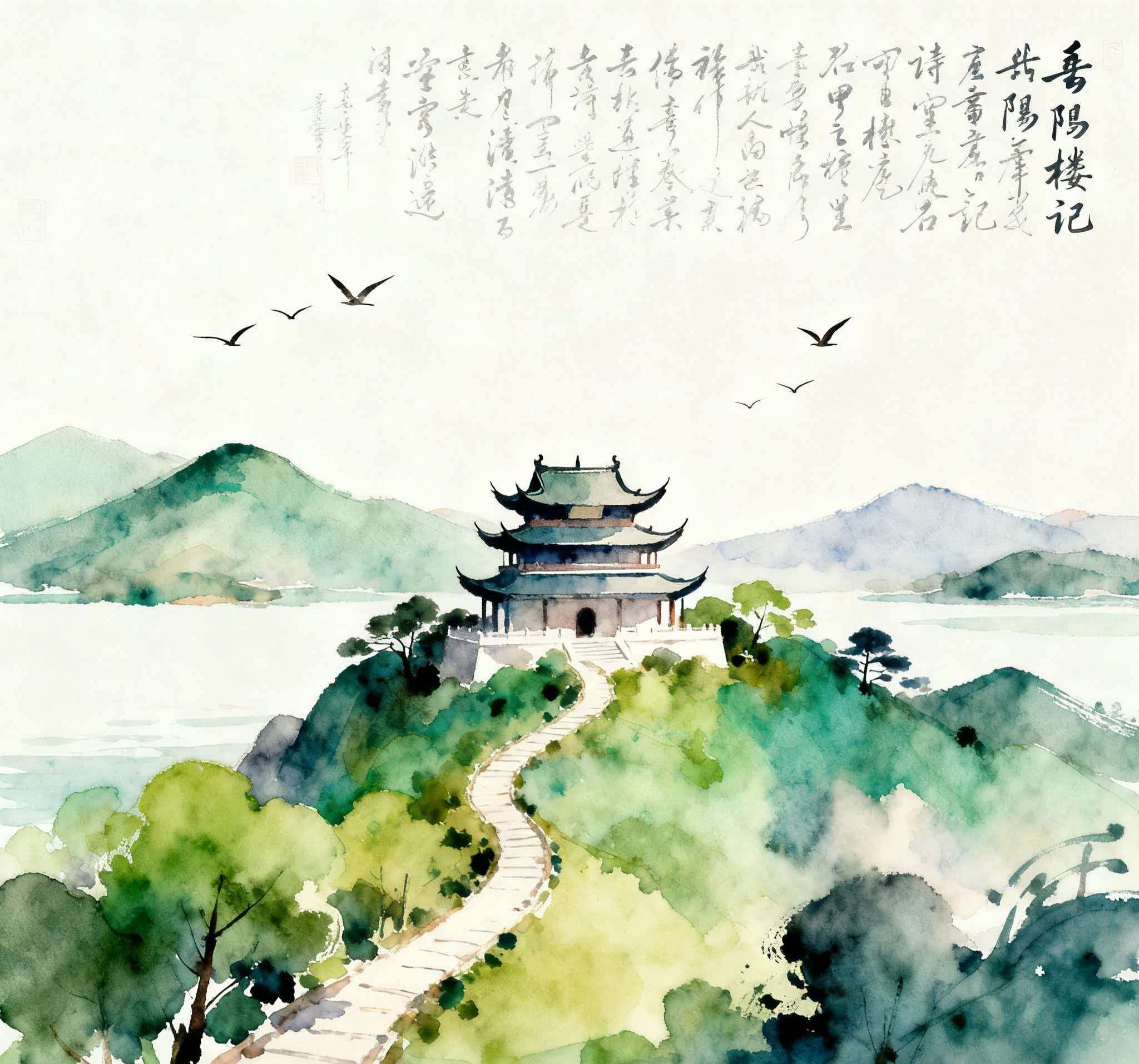 如今,岳阳楼仍矗立在洞庭湖畔,俯瞰着千年的潮起潮落;而《岳阳楼记》中的文字,早已超越了一篇“记文”的范畴,成为融入中国人骨血的精神基因。它告诉我们:真正的君子,从不为个人得失而悲喜,只为天下苍生而忧乐——这份情怀,便是中国人最珍贵的精神财富。