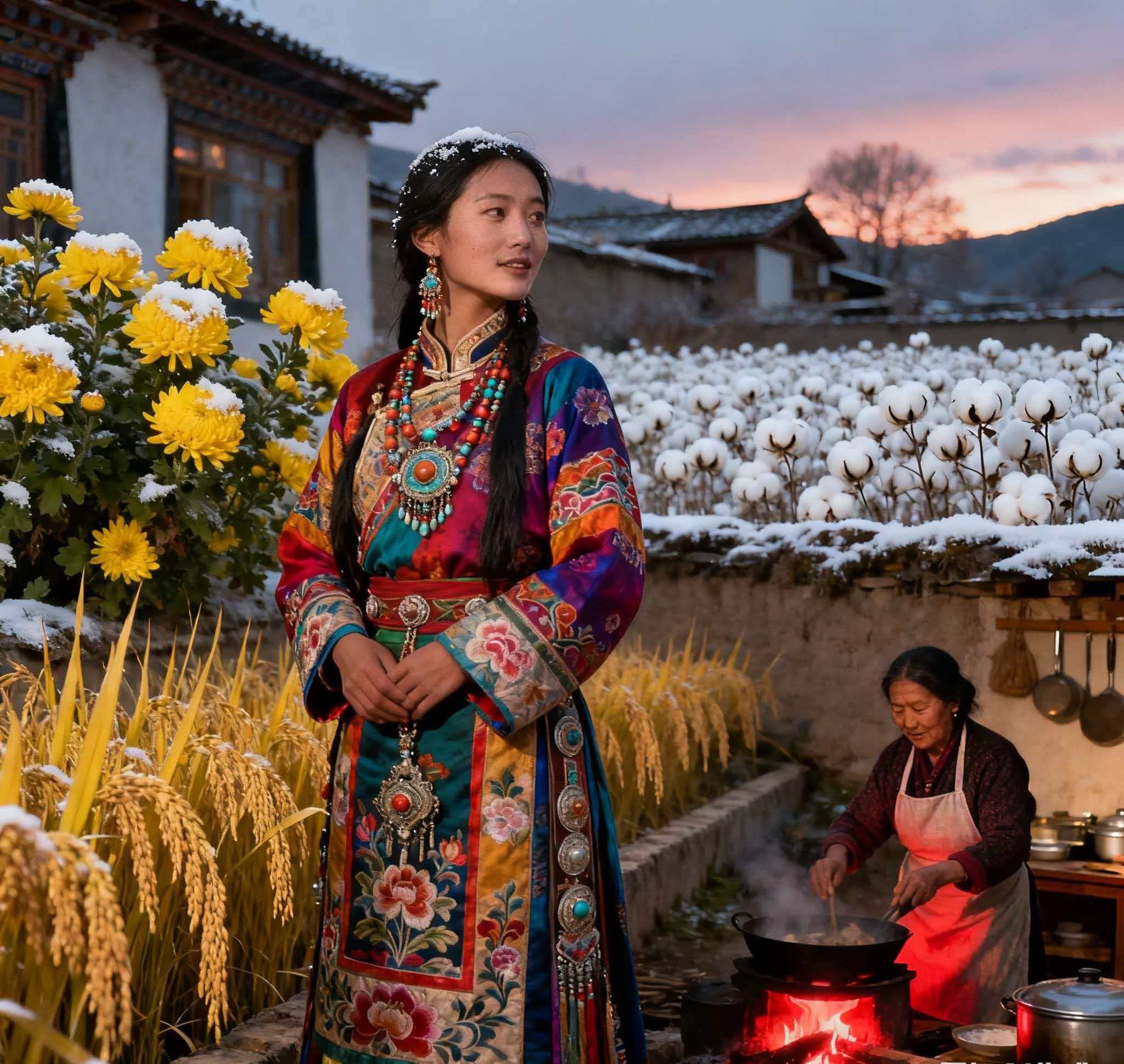 夜里躺在床上,能听见窗外的风轻轻吹着,带着霜的气息,掠过屋檐,掠过院角的菊。偶尔有霜粒从菊瓣上落下,轻轻一声,在静夜里格外清晰。我想着白日里田埂上的棉农、院角的菊、锅里的汤,还有母亲递汤时温暖的手,忽然觉得,霜降不是秋的结束,倒像是秋的温柔告别——它用一场霜,把秋的热烈收进怀里,再悄悄递给冬天,让我们在接下来的冷日子里,还能想起菊的香、棉的软、汤的暖。