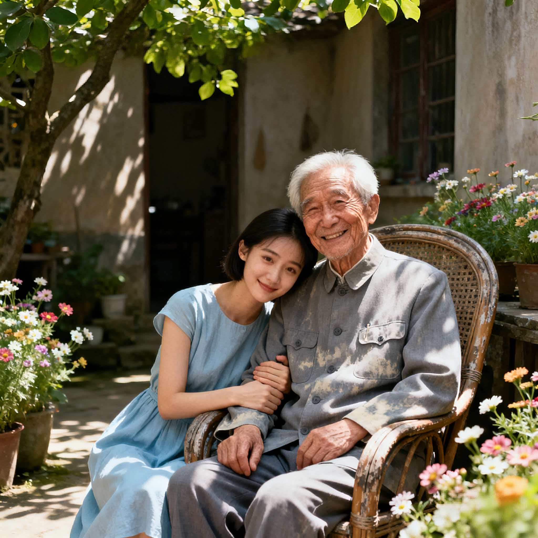 晚风拂过,槐花香飘过来,混着向日葵的暖香。爷爷望着晓雨,眼里的光像极了小时候院里的月光,温柔又明亮。他慢慢抬起手,摸了摸晓雨的头发,轻声说:“好,好,咱丫头长大了。”