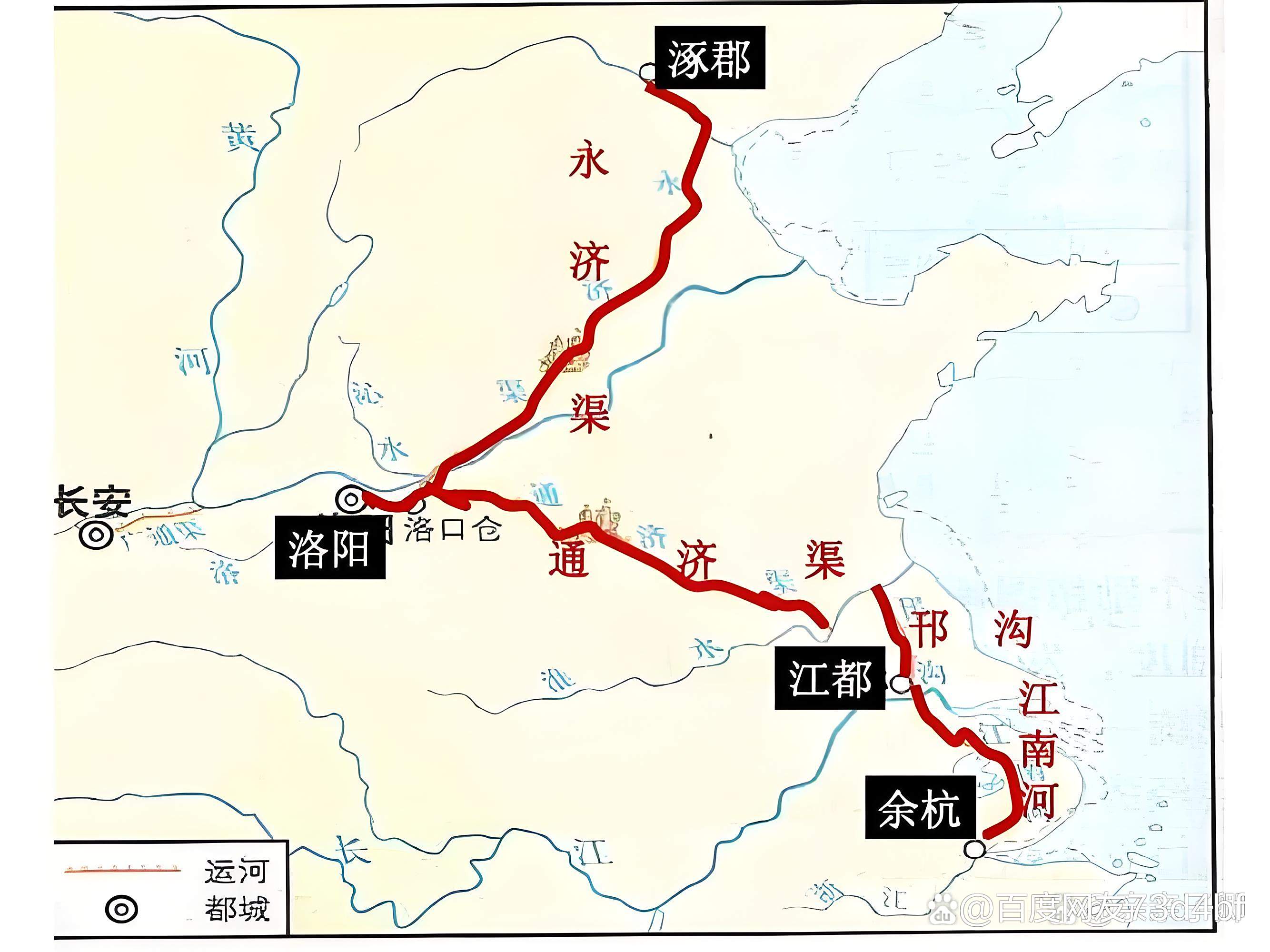 四段运河贯通后,形成“以洛阳为中心,北控燕赵,南抵吴越”的水运格局,船只从余杭出发,经长江、邗沟、淮河、通济渠、黄河(或永济渠),可直达涿郡,实现“天下货物,聚于洛阳”的战略目标。